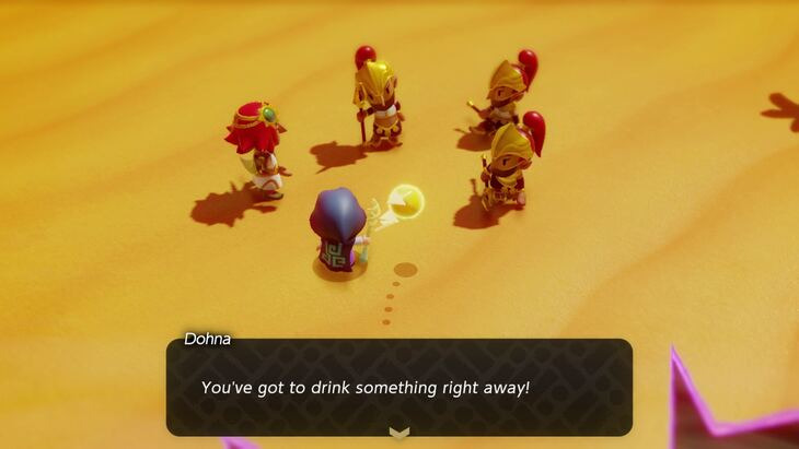 선인장 스무디를 얻으면 Gerudo Town 남쪽의 경비병 무리에게 돌아가 Donha에게 건네주세요. 그러면 또 다른 짧은 컷신이 트리거되고 퀘스트가 완료됩니다.