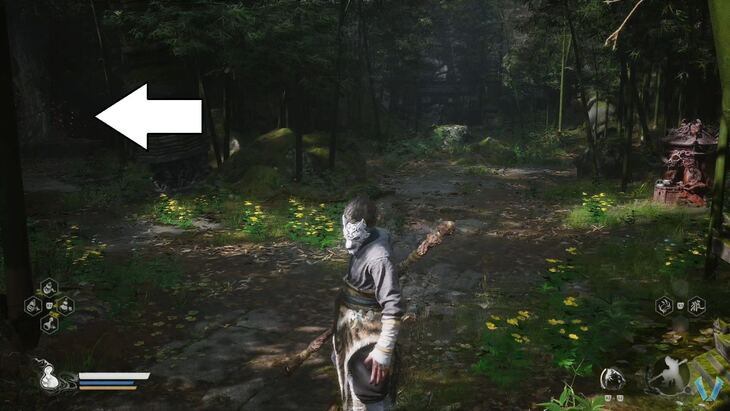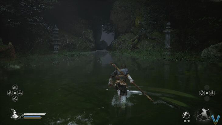 Shen Monkey에게 체크인한 후 동굴 끝에 있는 녹색 불꽃을 잡고 Will을 더 얻은 다음 아래로 떨어집니다. 여기에서 Snake-Head Mushroom을 잡은 다음 동굴을 나와 나무 비계를 따라 내려가 큰 연못에 도착합니다. 중앙으로 달려가 일련의 장면을 트리거하고 보스 전투 직후에 시작합니다.
