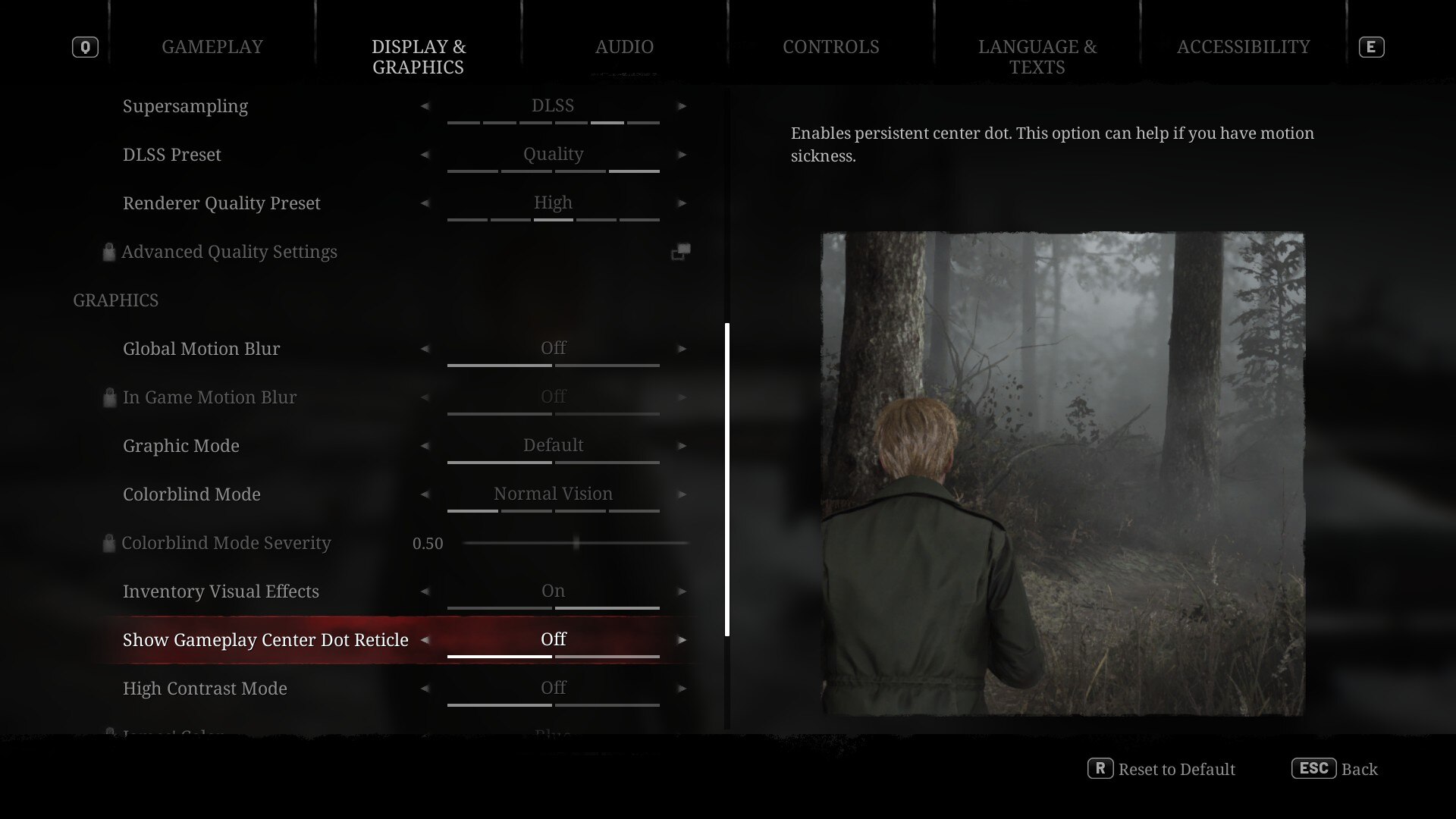 Silent Hill 2 리메이크 그래픽 설정 (이미지 출처: Konami)