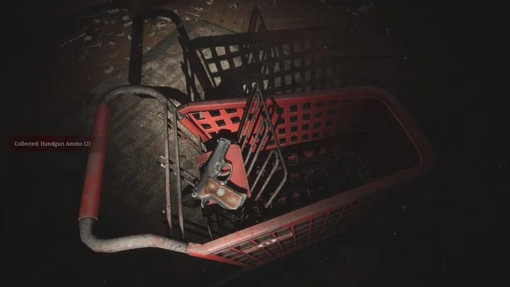 막대 바로 옆에 있는 아파트 213호로 들어가서 벽의 틈새를 통해 다음 복도로 들어가세요. 복도 끝에 아파트 217호가 있습니다 . 아파트 안에는 아파트 중앙에 있는 쇼핑 카트에 권총이 있습니다 . 만약을 대비해 즉시 재장전하세요. 또한 TV 옆, 주방 서랍, 창고에서 탄약을 주워 모으세요 .