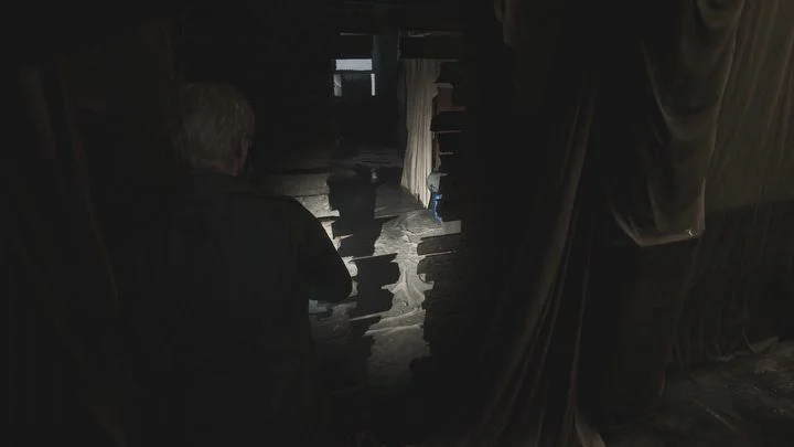 점프스케어에 대비하세요! 손전등을 집어드는 순간, 새로운 유형의 적이 당신을 공격할 것입니다 . 보드로 그를 때려눕힌 다음, 마네킹 뒤에 있는 서랍을 열어 안뜰로 가는 열쇠를 찾으세요 .