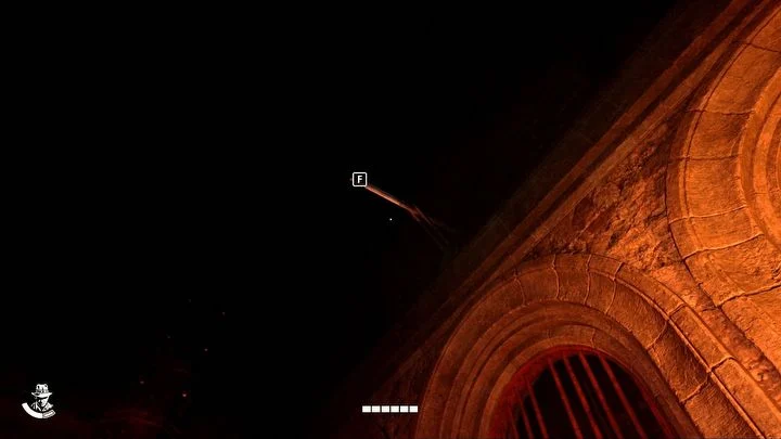 - 스크린샷에 표시된 대로, 메인 홀로 돌아가서 채찍으로 위쪽 막대를 잡으세요 .