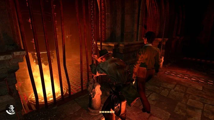 - 메인 홀에서 직진하고 아직 중앙 레버를 당기지 마세요 . 퍼즐 솔루션은 아직 준비되지 않았고 불꽃이 인디의 체력 포인트를 일부 앗아갈 수 있습니다.