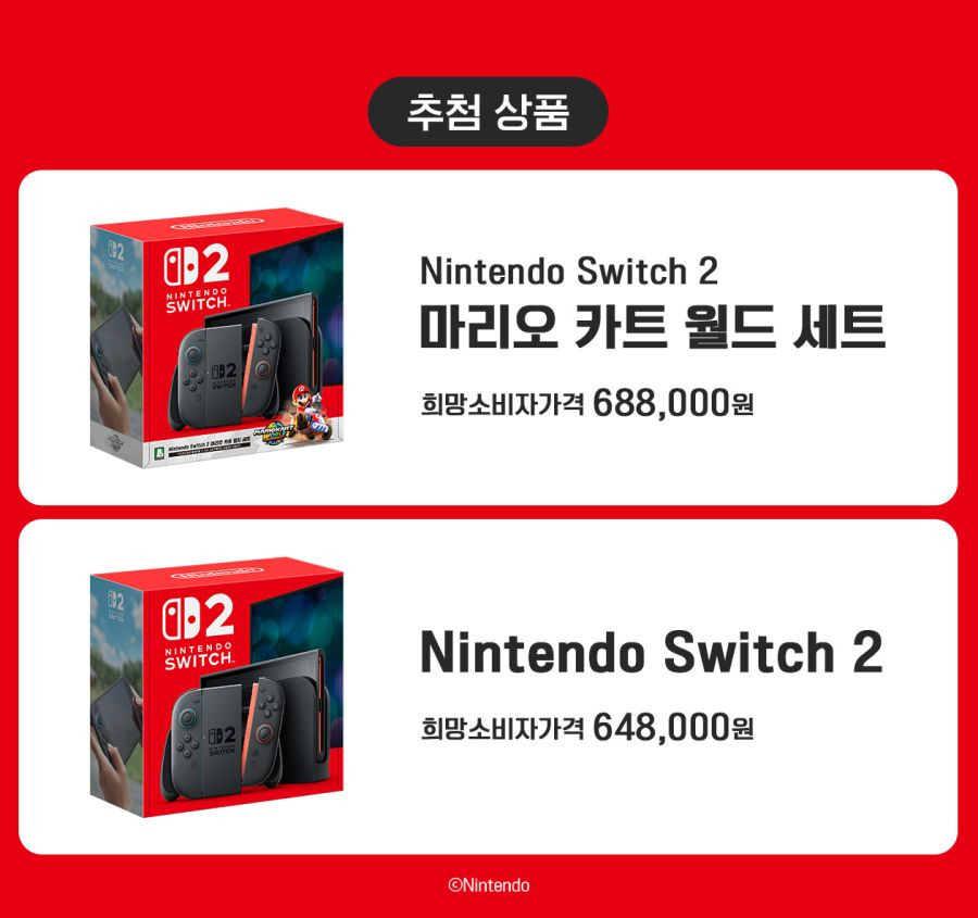닌텐도 스위치 2 본체 + 마리오 카트 월드 세트 / 688,000원