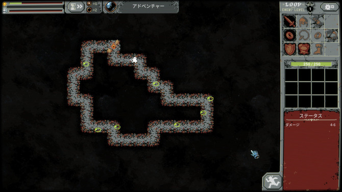 "Loop Hero"세계가 사신에 의해 무한 루프에 던져지고, 모든 생명이 어둠에 지배 된 세계에서 기억을 잃고 깨어 모험가가 끝없는 루프를 무찌르고 세상을 구할 수 있도록 "바퀴"하는 RPG입니다. 플레이어는 운동장의 트랙과 같은 일주하는 코스를 빙글 빙글 여러 번 돌고, 그 도상에서 출현하는 몬스터와 싸우고 전리품을 입수 해, 캐릭터와 거점이되는 캠핑, 그리고 반복하는 세계 그 자체를 업그레이드 것입니다.