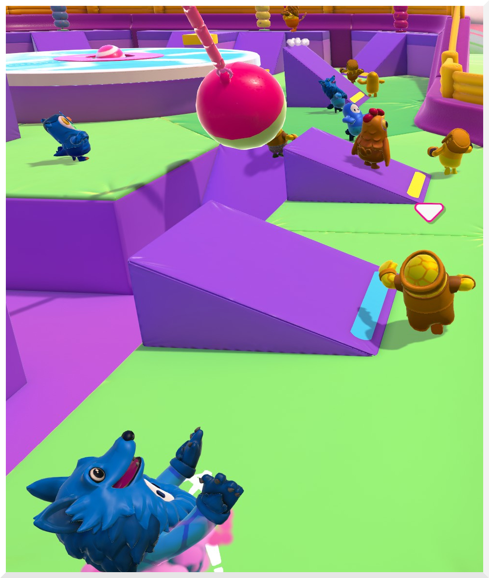 - 회전 장애물 사이의 틈새에 굳이 숨으려고 하지 마라, 순식간에 왕관을 잃게 될 것이다. 당신이 유일한 목표가 아닐 때, 다른 선수들은 당신이 가치 있는 것보다 더 많은 어려움을 겪게 될 수도 있다. 여기서는 그렇지 않다.