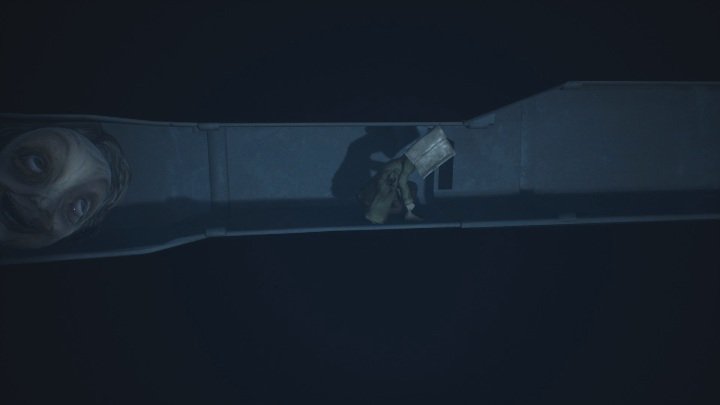 방을 나가면 작은 방에 들어갑니다. 더 멀리 가려면 캐비닛에 올라가 환기 샤프트를 통과해야합니다.