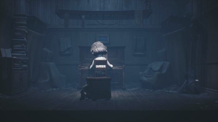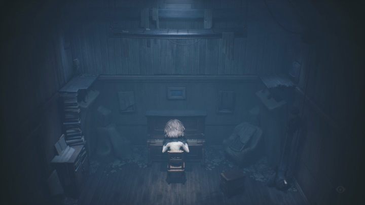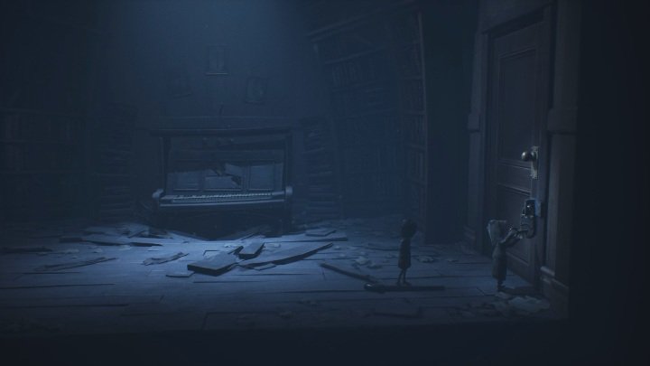 피아노가있는 방에있게됩니다. 책을 천천히 바닥까지 내려 가야합니다. 바닥에 뛰어 오르면 죽을뿐입니다.