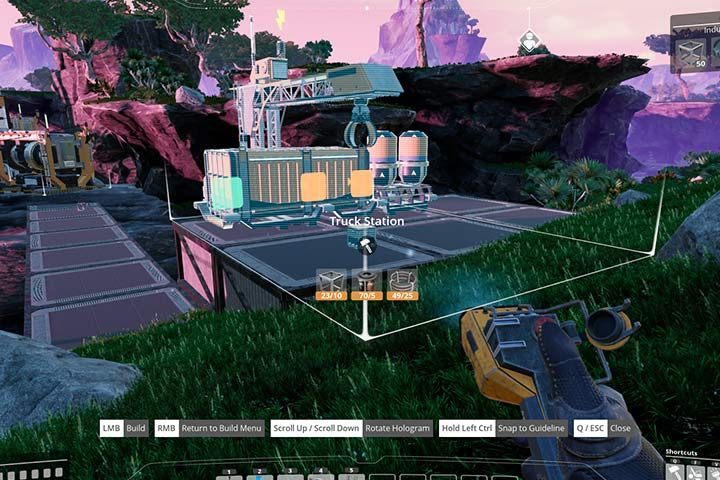 고정 경로를 생성하려면 먼저 트럭 스테이션을 구축해야합니다. 이것은 각 차량을 자동으로 내리거나 적재하는 건물입니다. 크레인까지 운전하면 건물이 장비 자체에있는 물품을 적재하거나 회수하기 시작합니다. 차량을 직접 운전하든 AI에 의해 작동하든 상관 없습니다. 흥미롭게도이 건물에는 출구가 하나 뿐이고 컨베이어 벨트 용 입구가 두 개 있습니다. 건물에 연료가있는 경우 차량은 자동으로 탱크를 보충해야합니다.