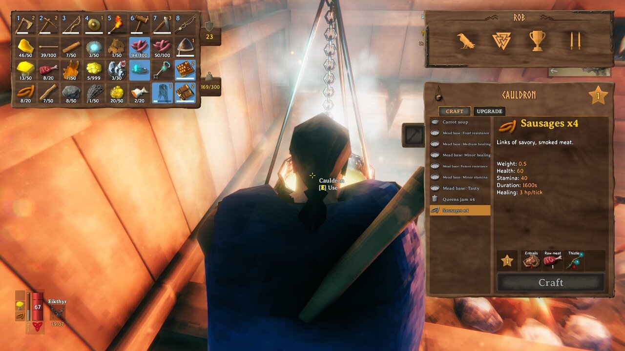 다른 생존 제작 시뮬레이션과는 달리 Valheim 은 배고픔이나 갈증 관리 시스템이 없습니다. 대신 식품은 건강 관리 수단으로 더 많이 기능합니다. 한 번에 최대 3 가지의 음식을 먹을 수 있으며, 무엇을 먹느냐에 따라 최대 건강이 증가하고 시간이 지남에 따라 치유됩니다. 결국 이러한 보너스는 사라집니다. 심지어 최대 건강에 영향을주는 것들도 있지만, 이러한 식용 도우미는 운이 좋다면 한 번에 10 분에서 20 분 동안 당신을 강화시킬 수 있습니다. 그것은 중후반 게임 시나리오에서 승리와 패배의 차이 일 수 있습니다.
