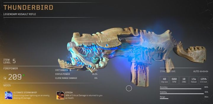 Mods-첫 번째는 각 샷마다 번개를 내립니다. 두 번째 모드는 치명적 피해의 백분율 (스크린 샷에서 30 %)을 건강으로 반환합니다.