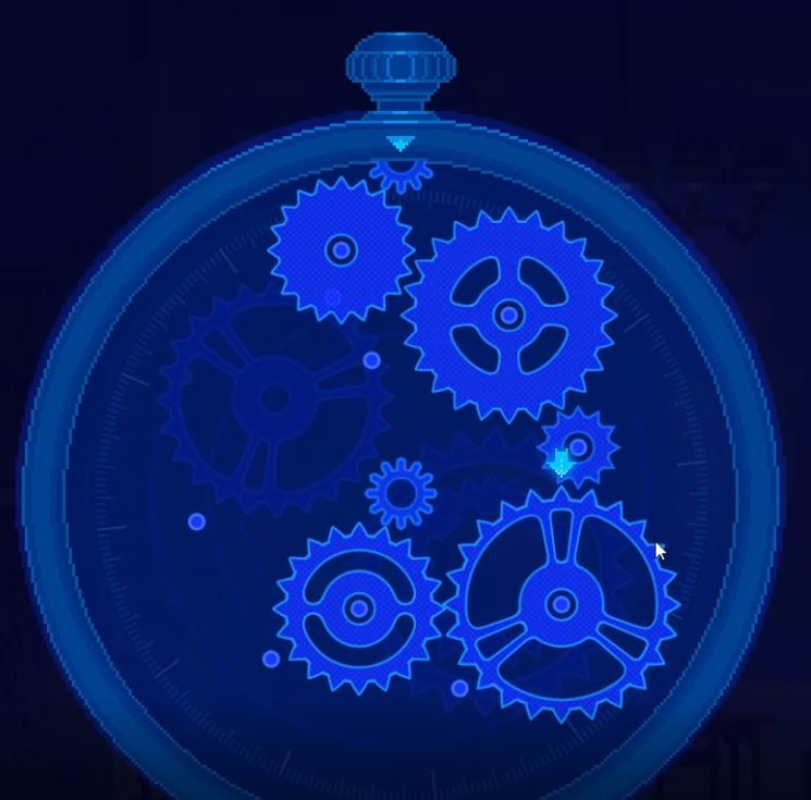 다른 고양이들에게 가서 이상한 냄새가 나는 고양이 먹이를 잡고 큰 회색 고양이에게 가져 가세요. 그것은 방해가 될 것이고 뚜껑의 움푹 들어간 곳을 검사 할 수있을 것입니다. 여기에서 시간을 되 감고 무슨 일이 일어 났는지 확인하려면 시계 내에서 기어 퍼즐을 완료해야합니다. 기어는 아래 이미지와 같이 배열해야합니다.