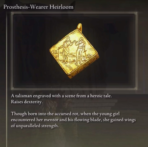 플레이어가 남용할 수 있는 또 다른 민첩 기반 부적은 밀리센트의 의족 으로, 플레이어의 전반적인 성능을 높이고 민첩에 비해 훨씬 더 강력한 무기를 만들 수 있습니다.