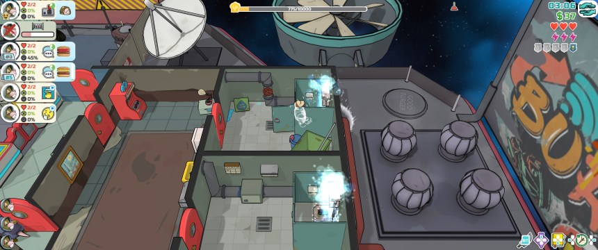 Godlike Burger에는 스토리가 많지 않으며, 공정하게 말해서 실제로 스토리가 필요한 게임은 아닙니다. 당신은 그 세계를 조금 탐험하는 선택적인 만화책 스타일의 컷신을 가지고 있지만, 나는 그냥 건너뛰는 것을 발견했습니다. 그러나 요점은 간단합니다. 당신은 우주에서 자신의 길을 가려고 노력하는 레스토랑 주인/셰프로 플레이합니다. 어둡고 끔찍한 비밀을 숨기면서 브랜드를 구축하고 싶습니다.
