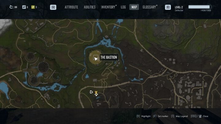 이제 근처에 있는 Bastion 으로 이동해야 합니다. 정확한 위치는 지도에 표시됩니다. 장소에 도착하는 가장 좋은 방법은 지도에 표시된 경로를 따라가는 것입니다.
