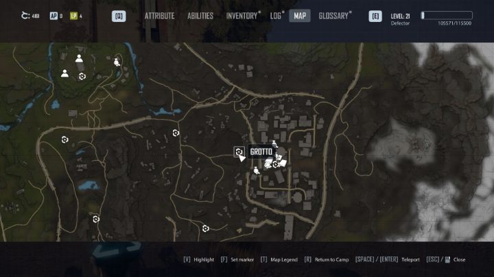 어느 도시에나 도달하면 임무가 완료됩니다. The Fort , The Grotto , The Crater , The Depot 및 The Castle 의 5개 위치에서 선택할 수 있습니다 . 이 모든 장소는 지도에 표시됩니다. 이 도시는 시작 위치에서 가장 가깝기 때문에 요새 또는 동굴을 방문하는 것이 좋습니다. 어느 쪽을 선택하든지 도시 입구에 가까워지면 잃을 것이 없는 퀘스트가 완료됩니다.