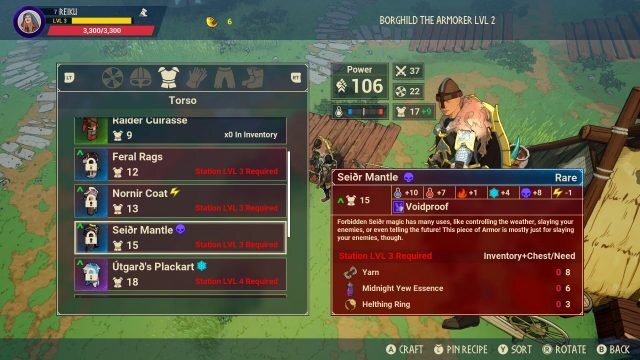 Midgard의 부족은 확대입니다. 날이 짧아질수록 적들은 더 강해집니다. 폭풍우를 이겨내는 유일한 방법은 장비를 계속 업그레이드하여 자신의 힘을 높이는 것입니다. 이렇게 하려면 영혼을 사용하여 NPC의 레벨을 올려야 합니다. 몬스터, 보물 상자 및 Jötnar에서 수집한 모든 전리품을 활용할 수 있는 새로운 무기, 갑옷 및 물약을 제공하기 때문에 이것은 매우 중요한 우선 순위입니다. 성문이나 탑을 건설하려면 NPC 중 한 명을 업그레이드해야만 만들 수 있는 절단석이나 연철과 같은 더 나은 건축 자재도 필요합니다. 또한 정착지의 상자에 자원을 버려 공동 제작 풀에 추가할 수 있다는 점을 기억할 가치가 있습니다.