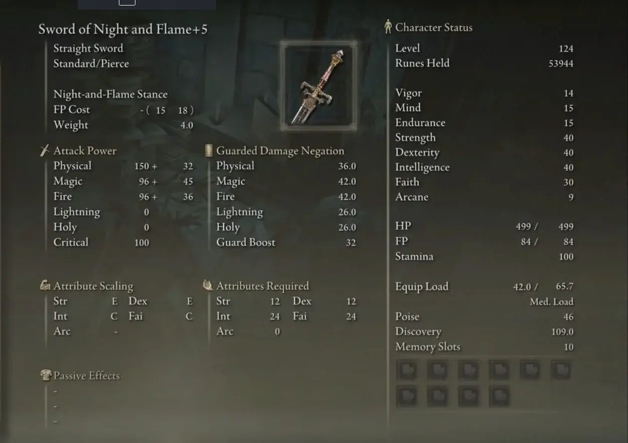 Sword of Night and Flame은 신뢰할 수 있는 서비스로 Elden Ring 커뮤니티에서 매우 인기가 있습니다. 기본적으로 균형 잡힌 공격을 펼칠 수 있는 스트레이트 소드로 인정받고 있다. 그러나 이 무기가 목록에 있는 이유는 기본적인 전투 동작 때문이 아닙니다. Sword of Night and Flame 의 독특한 무기 예술을 발견하는 즉시 진정한 기쁨을 누리게 될 것 입니다.