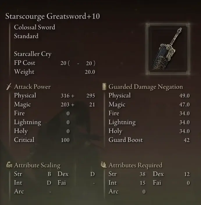 무장은 힘과 잘 어울리므로 최상의 결과를 얻으려면 힘 빌드 와 함께 사용하는 것이 좋습니다. 양검을 한 번에 두 손으로 휘두를 수 있기 때문에 가벼운 공격으로 적의 체력 바를 터무니없이 깎는다. Elden Ring의 다른 모든 무장 중에서 무기를 넣은 S-티어의 가치가 확실히 있습니다.
