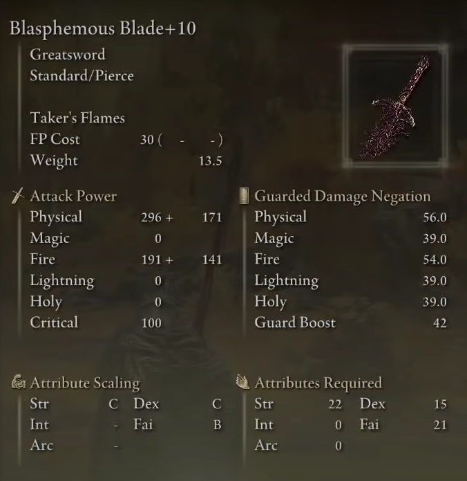 높은 수준의 악당과 다른 인간 플레이어에게 입히는 피해의 클러스터는 말할 것도 없고 적군과 함께 바닥을 닦는 데 매우 효과적입니다. Blasphemous Blade의 원소 피해도 상당히 중요합니다. 적에게도 화염 피해를 입힙니다. 요약하면, 당신은 범위, 패시브 효과, 전체 피해 및 무장의 무기 기술을 고려하여 부팅할 Elden Ring 최고의 PvP 무기 중 하나를 진정으로 찾고 있습니다.