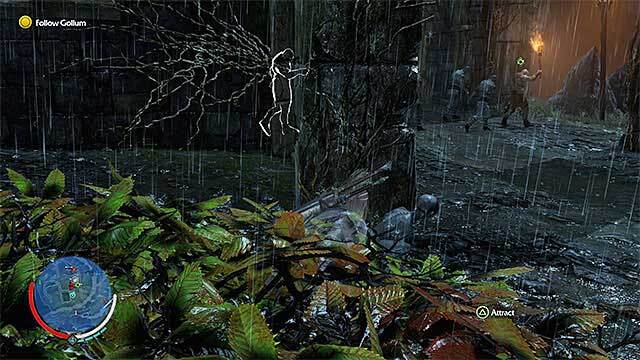 미션 시작 후 골룸을 따라가세요. 그가 멈추는 곳에서 멈추십시오. 주위에 있는 오크를 공격하려고 하지 말고 그들이 걸어갈 때까지, 그리고 골룸이 다시 움직이기 시작할 때까지 기다리십시오.