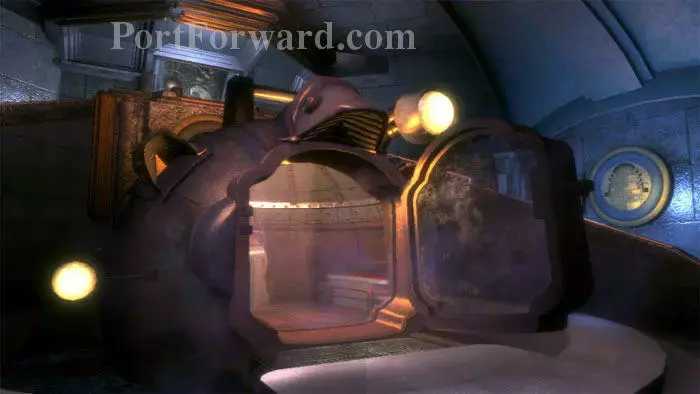 bathysphere를 종료하고 오른쪽에 있는 이 Vita-Chamber를 찾으십시오. 사망 시 가장 가까운 방에서 리스폰되므로 지속적인 게임 저장이 필요하지 않습니다. 게임 세계는 재생성 시 중단 없이 계속됩니다. 모든 적들은 피해를 유지하지만 사용한 탄약은 반환되지 않습니다.