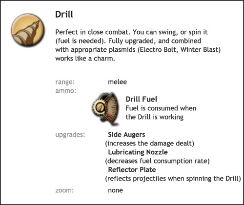 주의사항 : 사용 중인 무기에는 두 가지 공격이 있습니다. [마우스 왼쪽 버튼]을 누르고 있으면 드릴이 회전하고 연료가 소모됩니다. 버튼을 간단히 "누르면" 적의 내장을 뚫는 것만큼 효과적이지 않은 간단한 타격이 발생합니다.