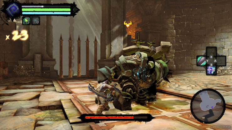 게임 플레이에 대해 말하자면, 악마 같은 적을 찢고, 복잡한 구조를 오르고, 퍼즐을 풀 때 죽음을 제어하는 것이 환상적입니다. 전투는 낫, 보조 무기, Redemption으로 알려진 총과 전투의 흐름을 뒤집을 수 있는 강력한 기술을 사용할 수 있어 게임 플레이가 가장 빛나는 곳입니다. 해킹하고 베면서 적에게 가두어 두었다가 적절한 순간에 회피하여 적들이 죽을 때까지 다시 적의 본거지로 만드는 기술을 사용하는 것은 매우 보람 있는 일입니다. Death는 매우 곡예적이고 직관적인 컨트롤로 벽에서 달릴 수 있어 대형 구조물을 재미있게 확장할 수 있기 때문에 스테이지를 가로지르는 것도 즐거움입니다.