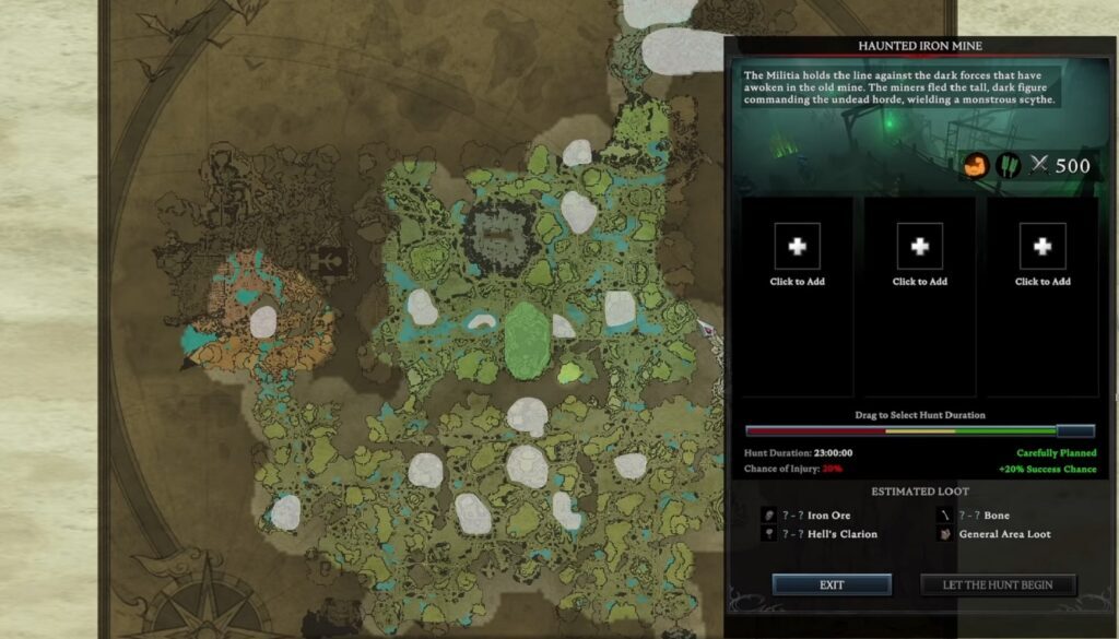 - 마지막으로 사냥 시작 을 눌러 하인을 배치 하십시오 .
