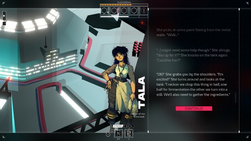 Citizen Sleeper의 이야기는 간단합니다. 자신의 미래를 확보하면서 당신을 되찾고 싶어하는 Essen-Arp의 현상금 사냥꾼을 피하십시오. 나의 새 집이 되기 전에 나의 피난처 역할을 했던 우주 정거장 얼린의 눈은 이 모든 것의 배경입니다. 나는 시간이 지남에 따라 준 대도시와 친밀하게 친해진 방법을 좋아합니다. Citizen Sleeper는 사랑스럽게도 이 우주 정거장을 내 목표를 위한 지도이자 거주자와의 관계를 심화하는 허브로 이해하도록 강요했습니다. 이를 달성하기 위해 나는 이 현상금 사냥꾼 중 한 명에게 돈을 갚고 하루를 더 살게 하는 것부터 끊임없이 쇠약해지는 내 몸을 치유하는 데 절실히 필요한 약을 구하는 것까지 다양한 목표를 Erlin's Eye에서 완료해야 했습니다.