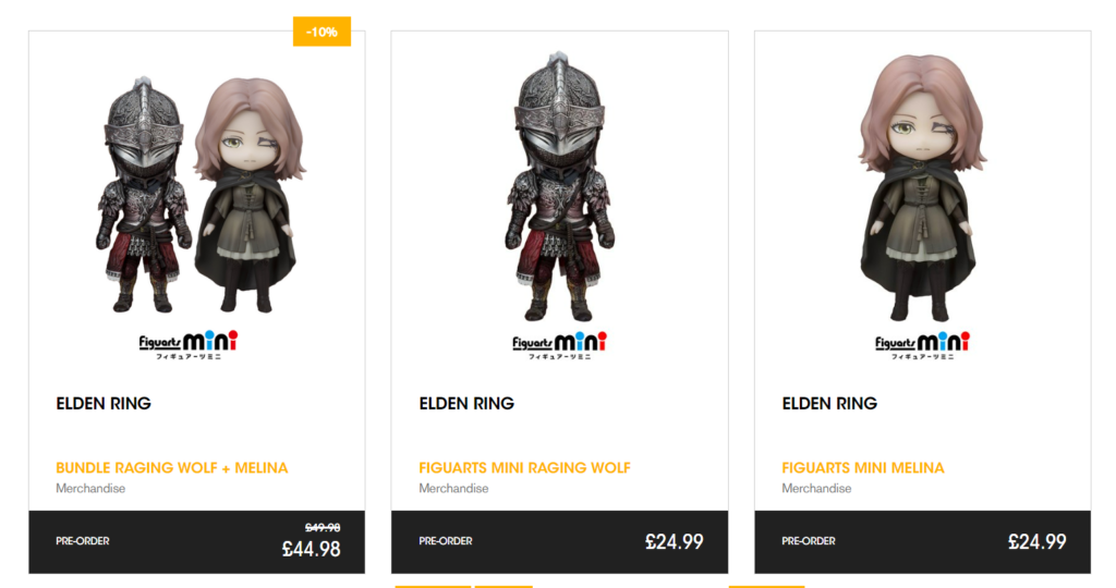 앞서 언급했듯이 Elden Ring 피규어는 모두 사전 주문이 가능합니다 . 두 피규어의 개별 가격은 £24.99이며, The Raging Wolf와 Melina를 함께 구입하면 총 가격은 £44.98입니다.