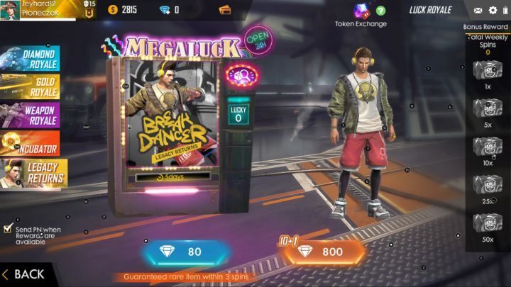 - 럭 로얄을 사용하기 위해 실제 현금을 쓸 필요가 없습니다 . 위의 복권 중 일부(주로 Gold Royale, 약간 적은 Diamond Royale 및 Weapon Royale)는 올바른 쿠폰을 수집한 후 무료로 사용할 수 있습니다. 이 쿠폰은 게임 플레이, 캐릭터 개발 및 주간 챌린지 중에 얻을 수 있습니다.