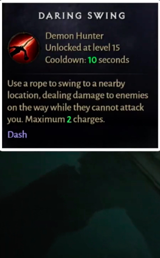 마지막으로 대담한 그네 는 디아블로 이모탈 플레이어 가 전투의 열기 속에 있을 때마다 디아블로 이모탈 플레이어의 궁극 의 역할을 수행할 수 있는 또 다른 스킬입니다 . 플레이어가 레벨 15 이상을 넘을 때마다 획득하여 사용할 수 있으며 꽤 초기 게임에서 사용됩니다. 또한 10초의 쿨타임이 있습니다.