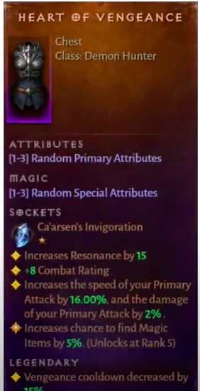Wildfire 스톤 외에도 Vengeance 스톤은 Diablo Immortal Demon Hunter Build 에 필수적인 또 다른 놀라운 스톤입니다 .