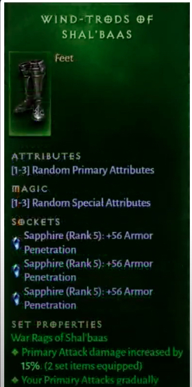 Diablo Immortal 캐릭터 가 발을 노리는 적의 분노를 겪을 필요가 없도록 발에 착용하기 위한 경갑인 Shal'baas의 Wind-trods를 도입하여 장비를 종료합시다 .