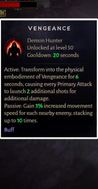 다음으로 언급하고 싶은 기술 은 디아블로 불멸의 플레이어 가 게임 플레이에서 레벨 50에 도달 할 때마다 잠금 해제할 수 있는 복수 입니다. 그와 함께 쿨타임도 20초가 됩니다.