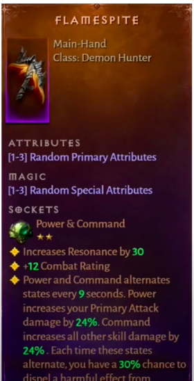 플레이어가 이 특정 악마 사냥꾼 무기 와 함께 사용할 수 있는 보석과 관련 하여 가장 좋은 옵션은 항상 힘과 명령 입니다. 이 젬에 Flamespite 가 장착되어 있을 때마다 플레이어의 Resonance는 앞에서 언급했듯이 30만큼 버프됩니다.