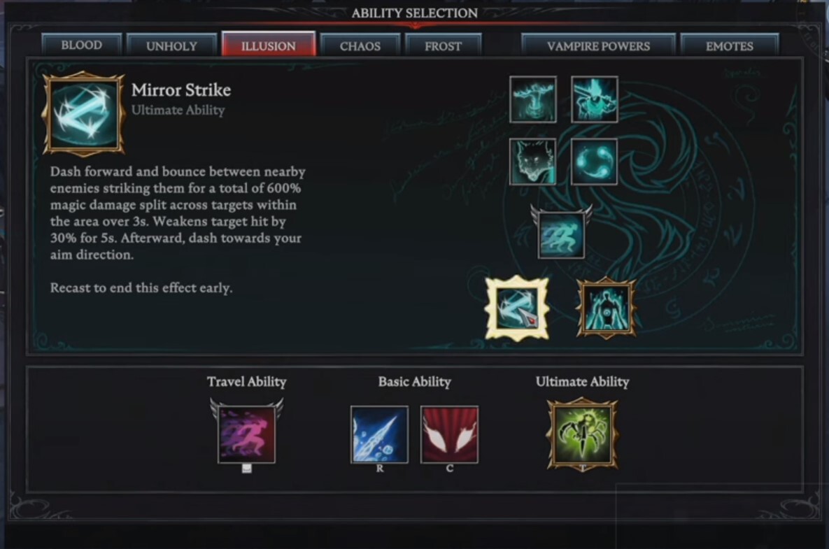 Mirror Strike 궁극기를 사용하면 캐릭터가 모든 대상에 걸쳐 마법 피해의 600%를 나누어 입힙니다. 궁극기 능력은 3초 동안 지속되며 대부분의 적을 제거하거나 최후의 일격에 약하게 만듭니다.