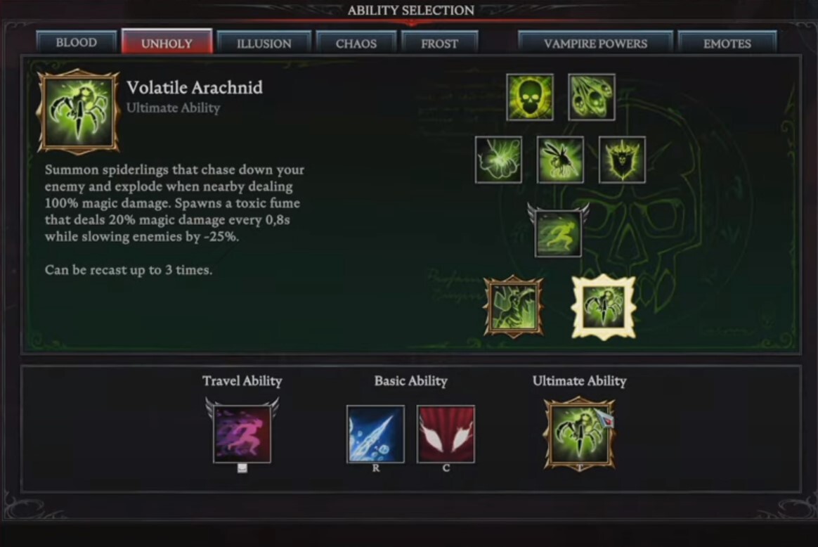 V Rising의 또 다른 뛰어난 PvP 능력으로 게임이 끝날 무렵 잠금 해제할 수 있는 것은 Volatile Arachnid입니다. Unholy 스킬 트리의 이 궁극의 뱀파이어 파워는 PvP 및 PvE 시나리오에서도 가장 좋습니다. 이 궁극기를 발동하면 PvE의 적이든 PvP의 공격자이든 목표물을 쫓는 새끼거미를 최대 3마리까지 시전할 수 있으며 폭발합니다.