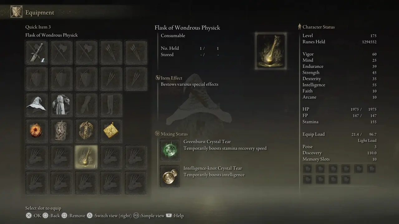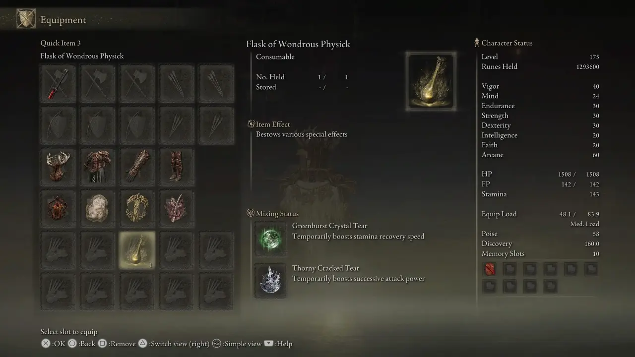 - Wondrous Physick Mixture: Greeburst Crystal Tear + Thorny Cracked Tear