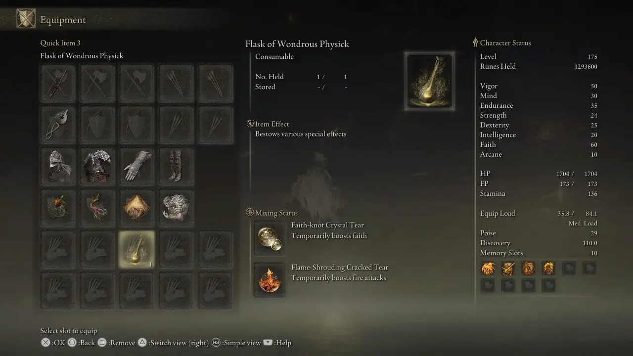 - Talismans: Erdetree's Favor, Radagon's Soreseal, Faithful's Canvas Talisman, and Radagon Icon