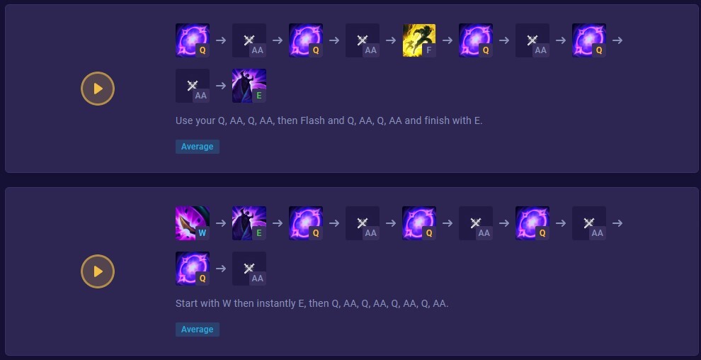 모든 콤보는 난이도별로 그룹화할 수 있습니다. 자르기 쉬운 것부터 분류하고 경기에서 빗을 사용하여 Bel'Veth를 연주하는 법을 배웁니다.