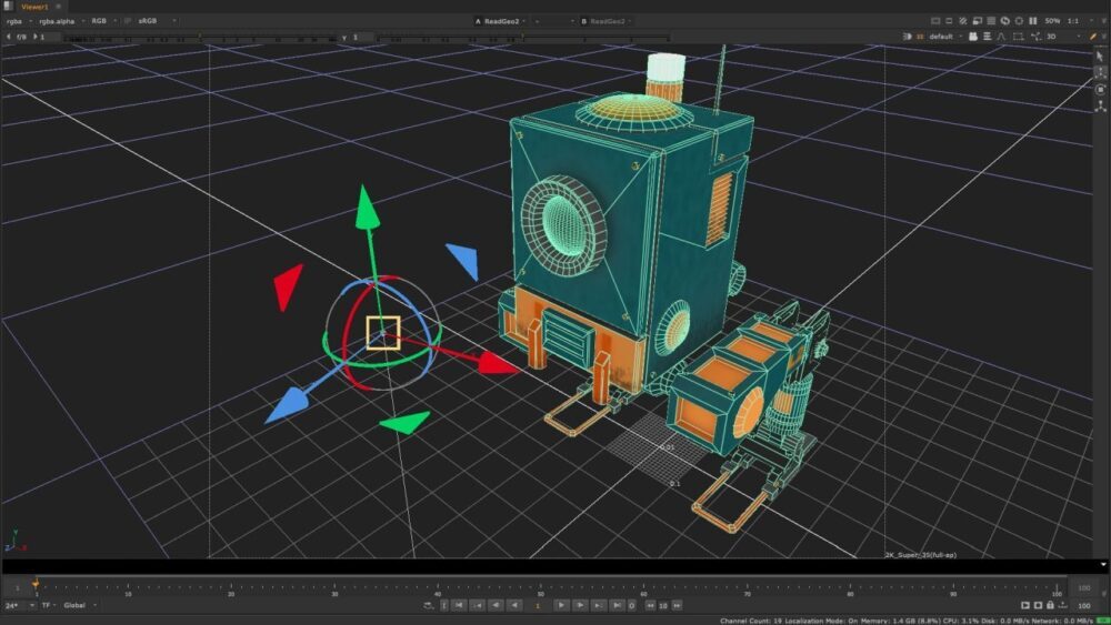 Foundry는 또한 Nuke의 3D UX를 파고들어 공간에서 3D 개체를 조작할 수 있는 훨씬 더 많은 제어 기능을 제공합니다. 가장 중요한 것은(평범하게 들릴지라도) 3D 개체의 피벗 포인트에 대한 보다 직관적인 컨트롤(및 더 많은 컨트롤)입니다. 이전에는 3D 개체를 시도하고 배치하는 것이 매우 어려웠습니다. 피벗 포인트를 꼭짓점에 스냅하고 정렬하기 위한 핸들은 3D 프로그램에서 익숙한 것처럼 훨씬 더 친숙하게 만듭니다.