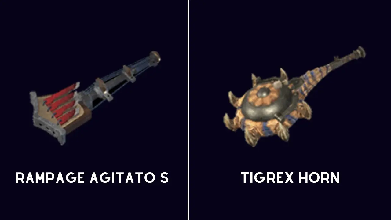 여기서 사용하려고 하는 두 가지 주요 무기는 Rampage Agitato S입니다. 빌드에 대한 선택적 선택으로 Tigrex Horn을 선택할 수 있는 옵션이 있습니다. 게임에 대한 여러 패치 와 최신 DLC인 Sunbreak가 출시된 후에도 . 이 무기는 DLC 콘텐츠를 지우는 데 시작하기에 아주 좋습니다.