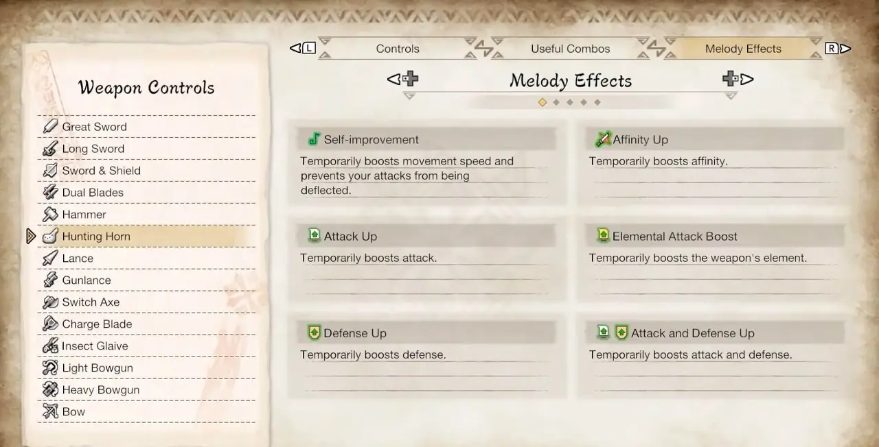 선택할 수 있는 멜로디가 모두 다르기 때문에 각각의 사냥 뿔을 실험해 볼 것을 권장합니다. 이것들은 나중에 우리가 이 무기에 가장 적합한 빌드에 대해 자세히 논의할 때 중요할 것입니다.