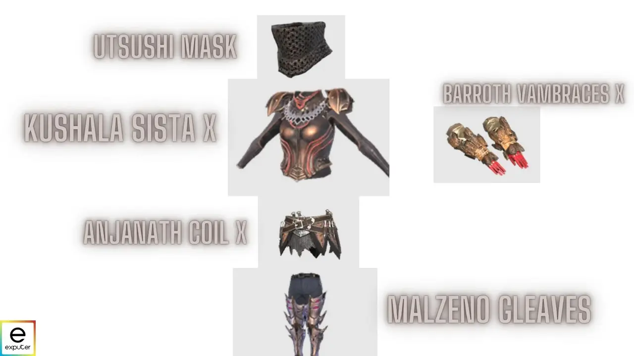 다리 부분의 경우 빌드는 Malzeno Gleaves 를 사용 합니다. 그것을 제작하고 얻으려면 플레이어가 x2 Malzeno Fellwing, x2 Malzeno Cortex, x1 Malzeno Bloodstone 및 x1 Jue Ginryu's Gokaku 를 획득해야 합니다 .