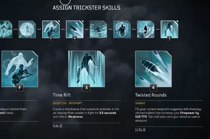 또 다른 변칙적 전력 완충 기술은 Combat Shield의 타임라인 으로, 플레이어가 Trickster 클래스 를 사용할 때 이미 보유하고 있는 전반적인 변칙적 전력을 상당히 증가시킵니다 .