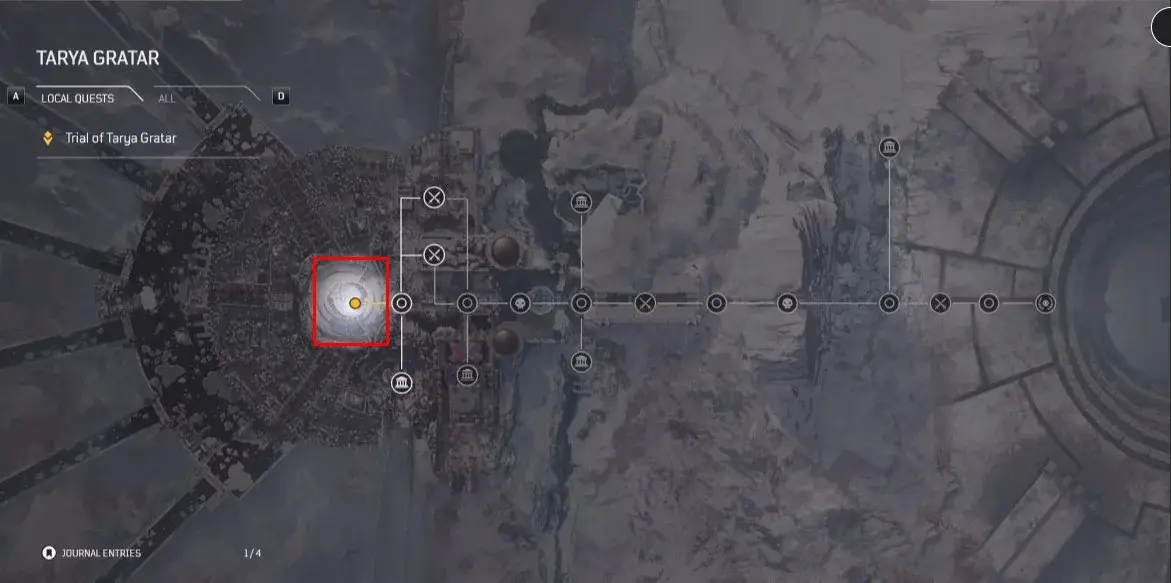 Trial은 Tarya Gratar의 보스 경기장으로, Trial을 더 깊이 탐험하기 위해 풀에서 보스 중 한 명을 물리쳐야 합니다. 보조 아이템이 포함된 잘 업그레이드된 장비가 있다면 이러한 적들을 쉽게 상대할 수 있습니다. 이 보스에게서 떨어뜨리는 전리품은 스커미시 경기장보다 클 것입니다. 평가판을 체크포인트로 사용하여 소중한 아레나의 진행 상황을 저장할 수도 있습니다.