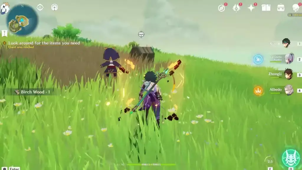 Kazuha는 분재 상자 장식을 조각하기 위해 돌과 도구가 필요하므로 미니맵에 표시된 위치로 이동합니다. 적을 무찌르고 재료, Rock Garden 거친 돌 및 Rock Garden 조각 도구를 수집하십시오.