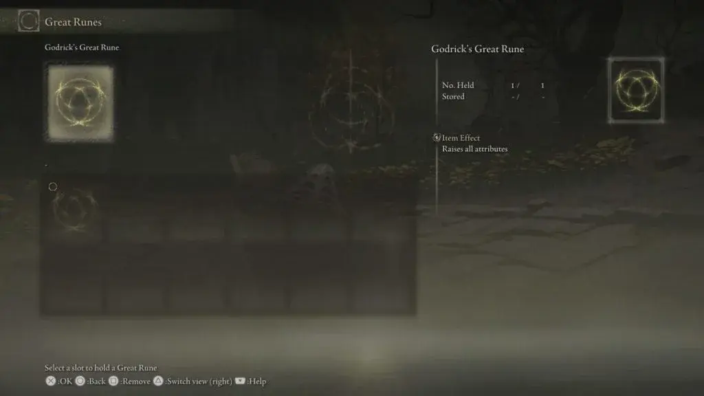 아직 게임 초반이고 아직 Radahn의 Great Rune을 잠금 해제할 수 없다면 Godrick의 Great Rune이 좋은 대안입니다. 이렇게 하면 모든 통계가 5가지 속성으로 증가합니다.